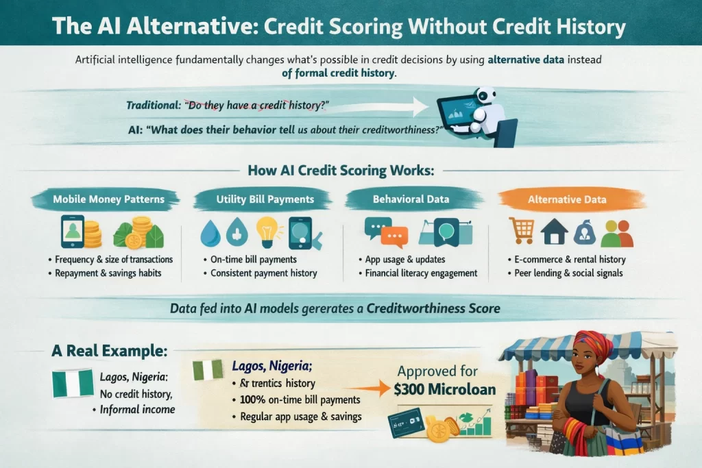 Instead of asking “Does this person have a credit history?”, AI asks “What does this person’s actual behavior tell us about their creditworthiness?”