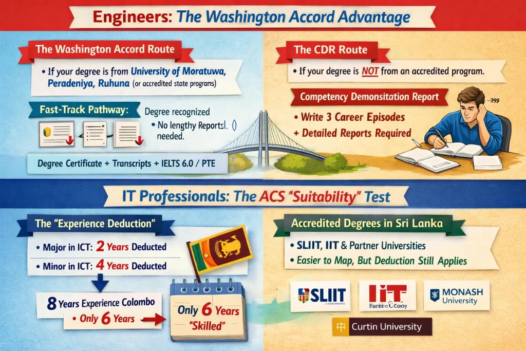 This 1,500-word guide details the assessment pathways for the most common Sri Lankan professions, the role of the Washington and Seoul Accords, and how to avoid the "deduction" of years that can cripple your points score.