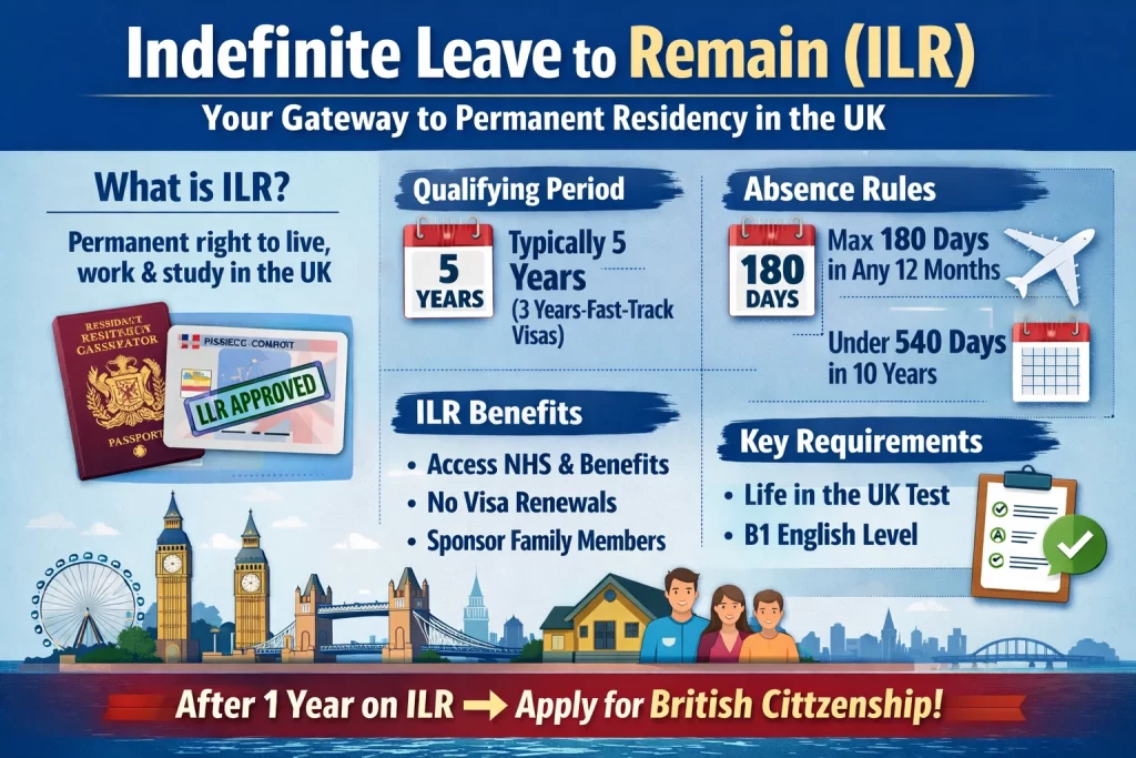 Indefinite Leave to Remain (ILR) grants you the unlimited right to live, work, and study in the UK without visa restrictions or renewals.[1][4] Think of it as your green light to permanent residency—I’ve guided dozens of clients through this milestone over 15 years, watching them trade temporary visa stress for real stability.[1]