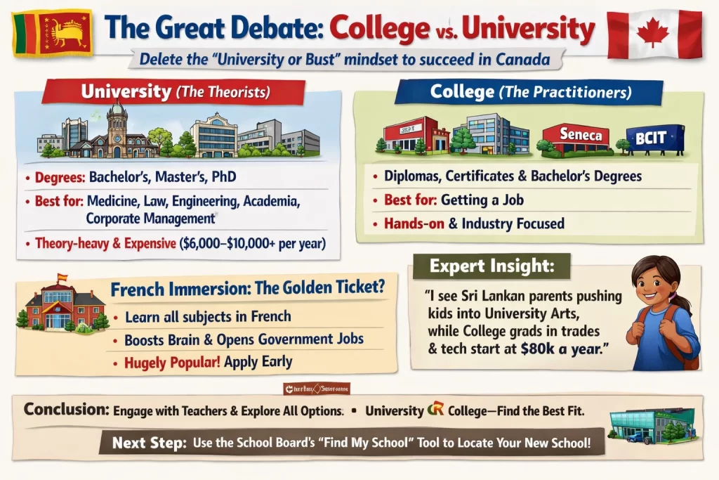 In Sri Lanka, "University" is the gold standard, and technical colleges are often seen as a backup plan. You need to delete that mindset to succeed in Canada.