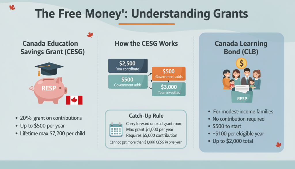 The Canada Education Savings Grant (CESG) is the primary reason to open an RESP. It effectively guarantees you a 20% return on your investment before you even buy a single stock or bond.