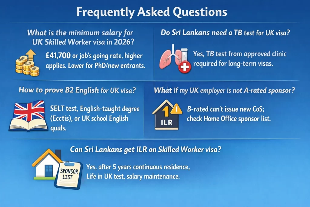One case sticks out: Priya, a Colombo physiotherapist with a STEM PhD. Her £34,500 offer flew through at 80% STEM discount, beating the £41,700 wall. She aced her TB test—mandatory for Sri Lankans, that chest X-ray from an approved Colombo clinic uploaded seamlessly.[2] Exceptions bite, though: extensions before December 2026 might hold lower thresholds like £31,300 if pre-April 2024 CoS.[2] Always cross-check your SOC on GOV.UK tables; I’ve watched apps crumble on outdated rates.