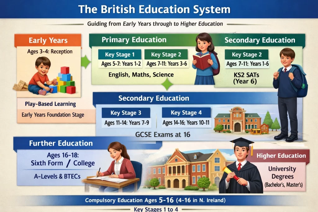 If you’ve ever wondered why British students take GCSEs at 16 while their American counterparts sit for SATs, you’ve spotted one of the education system’s defining features: structure. The British school system isn’t just different—it’s deliberately designed around clear progression points, each wi...