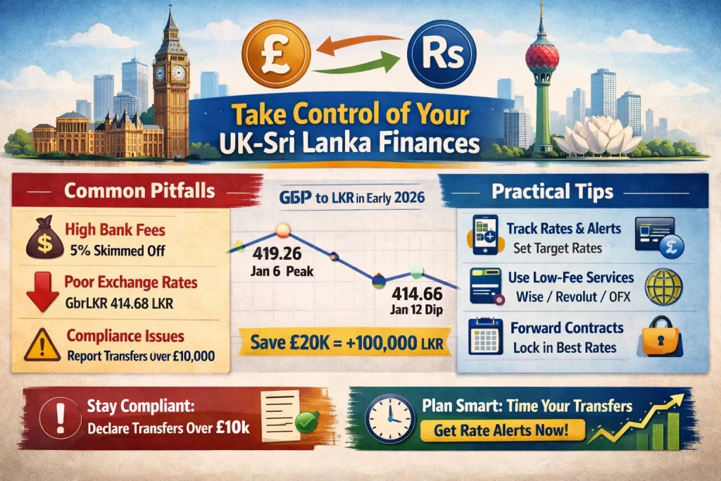 You watch the GBP/LKR rate swing from 419.26 on January 6 to 414.68 just six days later, and your planned transfer to Sri Lanka suddenly nets thousands fewer rupees. That gut punch hits hard when family back home depends on those funds.Volatility like this turns simple remittances into high-stakes gambles, especially with UK-Sri Lanka finances where every pound counts.