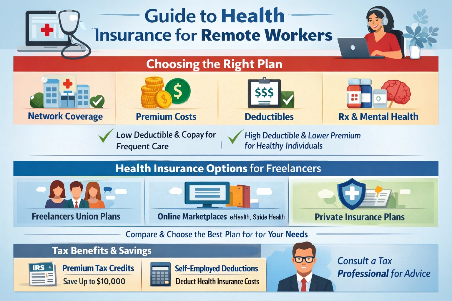 Remote workers should consult with a tax professional to ensure that they are taking advantage of all the tax deductions and credits available to them. A tax professional can help remote workers navigate the complex tax laws and regulations surrounding health insurance and provide guidance on how to maximize their tax savings. By seeking professional advice, remote workers can ensure that they are making the most of their health insurance benefits and minimizing their tax liability.
