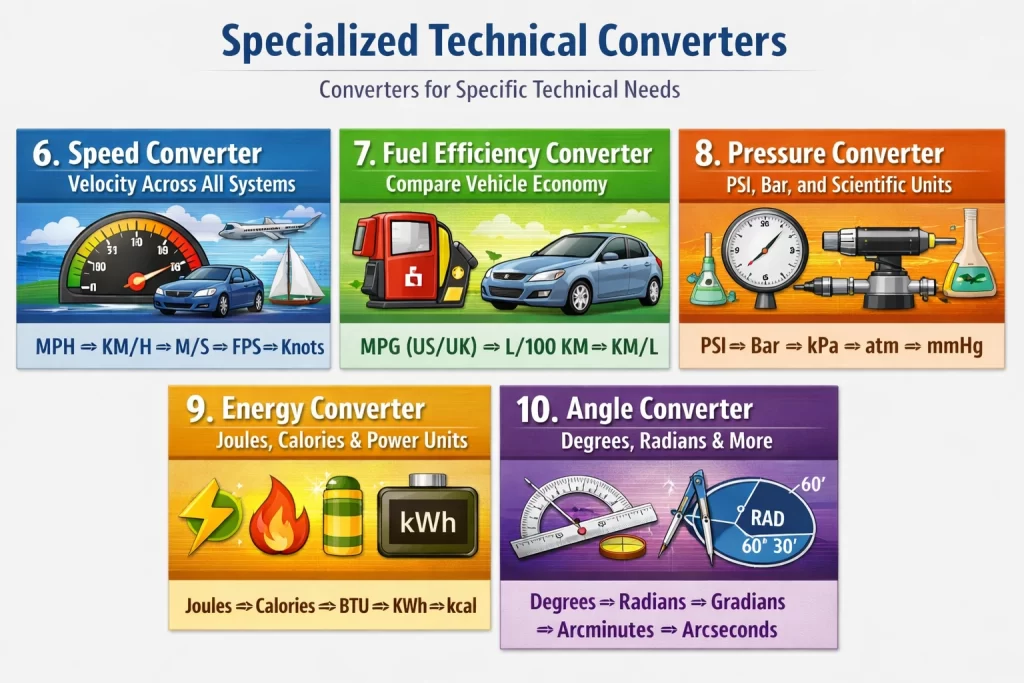 These converters address specific technical needs, from automotive applications to scientific calculations.