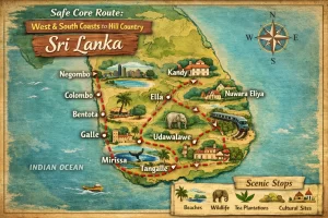 This is a planning template for Sri Lankans with their own vehicle wanting to circle the island in about 14–18 days. Adjust nights per place to your interests.