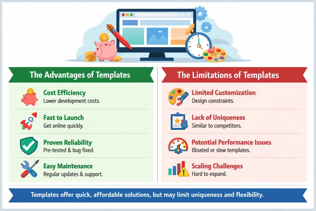 Scalability may hit walls. A template perfectly suited for a five-page brochure site might struggle to accommodate your needs as you grow into e-commerce, multiple languages, or complex integrations.